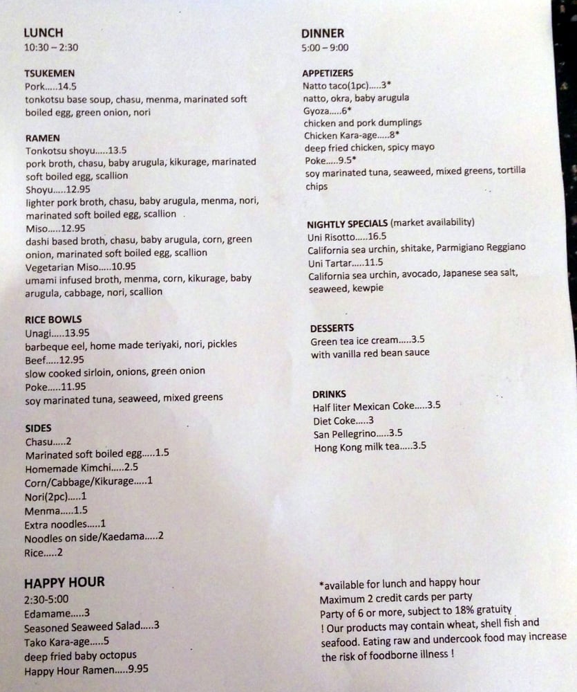 unique ramen created daily, so please ask your server for today's ramen special (pictured is an example)